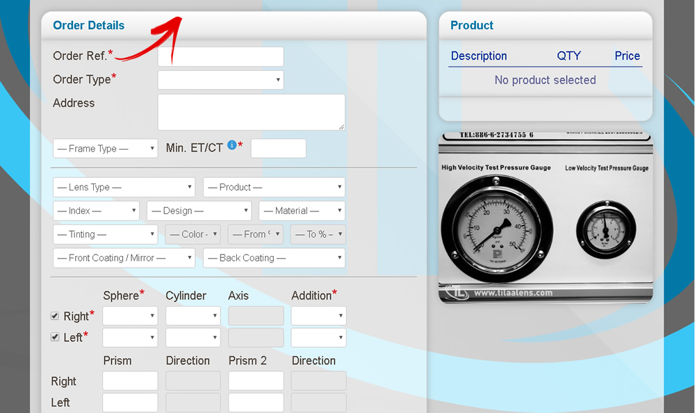 When place order can see location of up window and how all effect lens diam. etc.