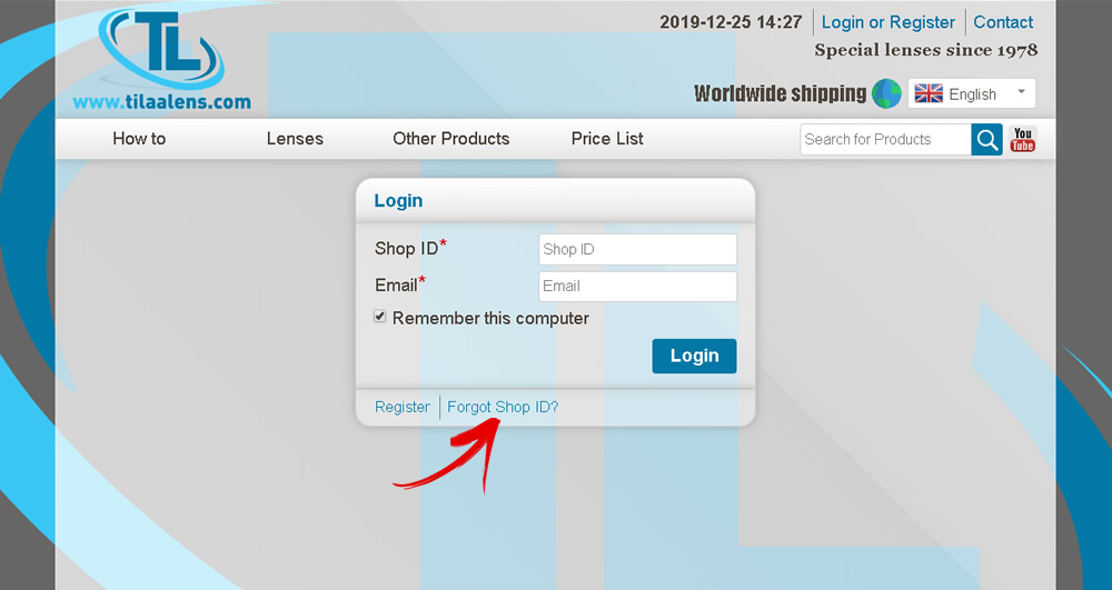 It is important to login, so that you can see product prices, change your customer details, and view orders that you have already made, etc. Shop ID is shop specific.