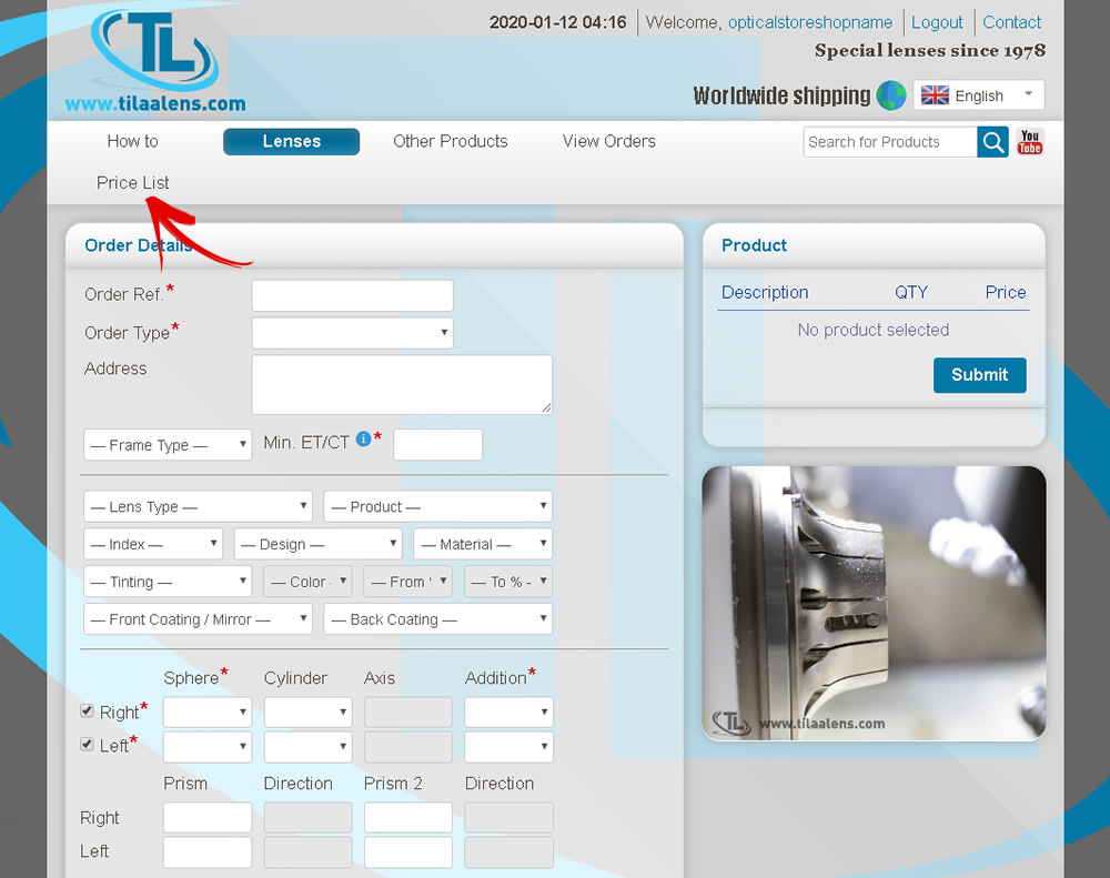 How to use tilaalens.com online ordering system